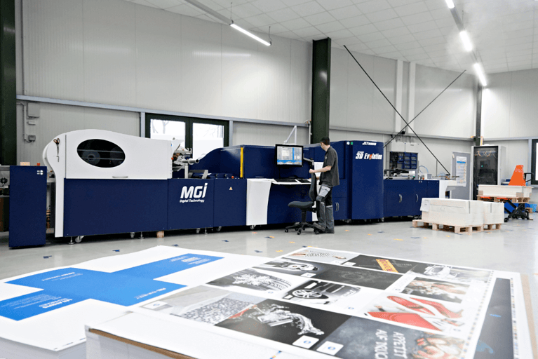 Na een grondige evaluatie koos druckpartner voor het hoogwaardige JETvarnish 3D Evolution B1 spot-UV vernis- & foliesysteem van MGI, de strategisch partner van Konica Minolta.
